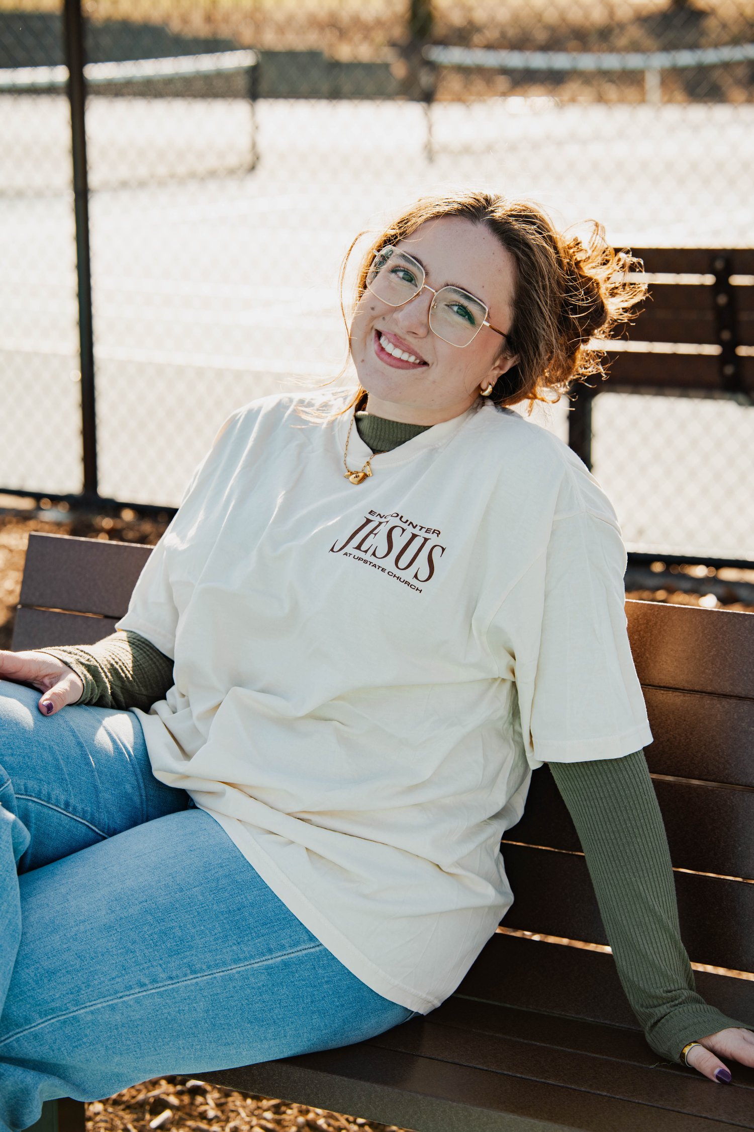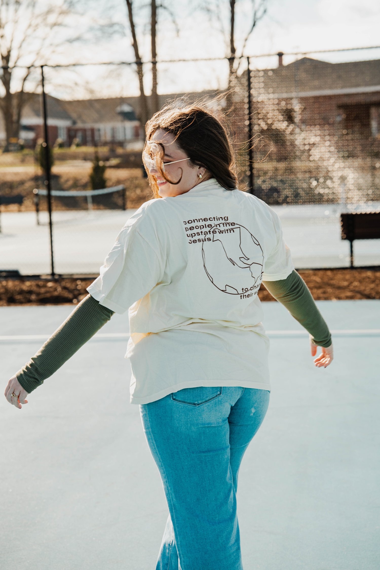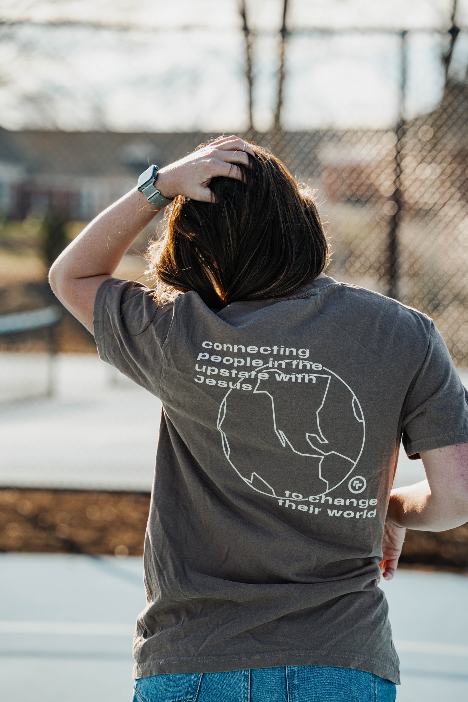 Soft, relaxed, and made to live in. This Comfort Colors® tee features a minimal “Encounter Jesus” design on the front and a bold back graphic: “connecting people in the upstate with Jesus to change their world.”